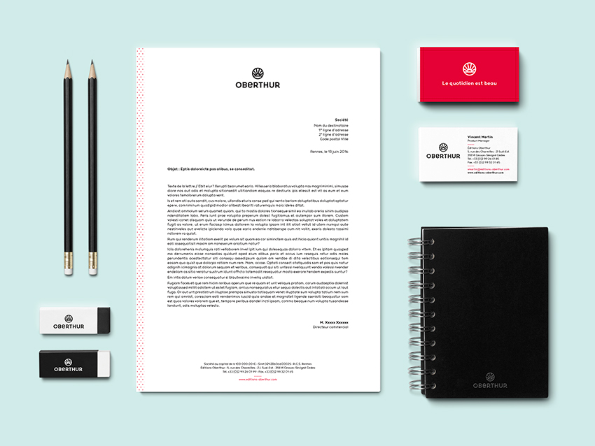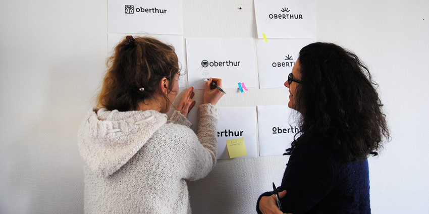 La plateforme de marque a définit un positionnement qui exprime la qualité des produits, leur accessibilité, et leur aspect « mode » : « Avec Oberthur, le quotidien est beau ». Notre mission est d’incarner ce positionnement dans une identité contemporaine et durable, tout en assurant le lien avec le logo historique. Nous devons faire en sorte que le public comprenne le positionnement, et que le personnel de l’imprimerie soit fier de la nouvelle identité pour l’utiliser au maximum sur les produits. Au-delà du logo seul, nous devons travailler sur la charte graphique : elle va définir comment appliquer le logo sur tous les produits de façon cohérente, stable et impactante ; et sur les codes graphiques : nous allons construire un univers de marque dont les codes porteront les valeurs de Oberthur.