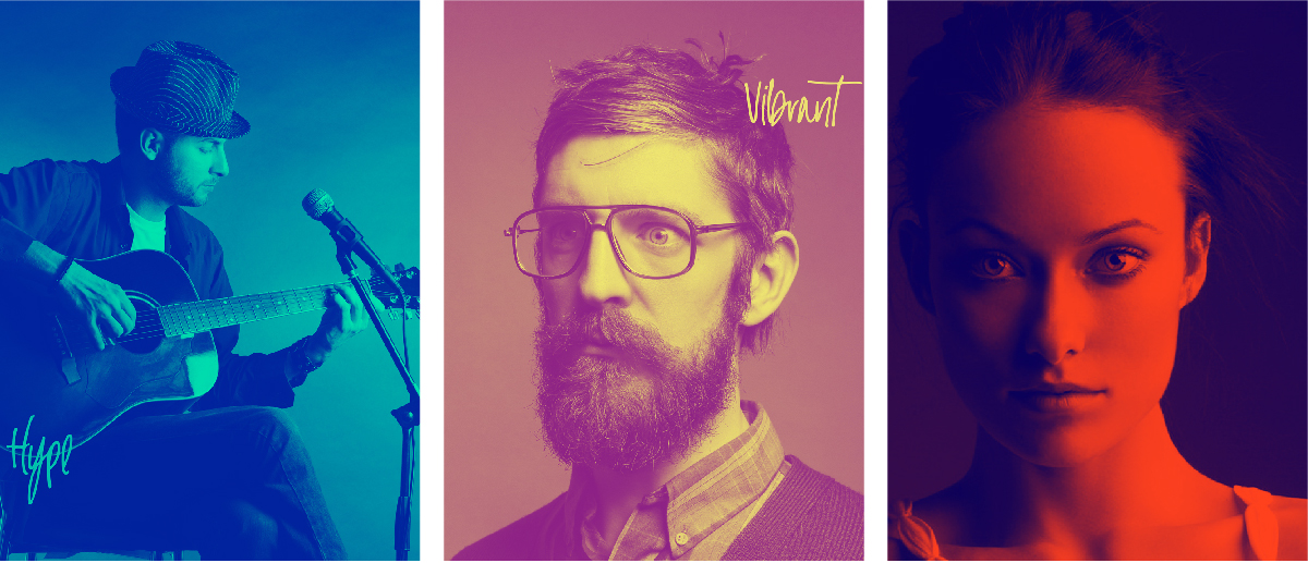Dans la catégorie des tendances de couleur, les images « duotone » sont aussi en vue. Il peut s’agir de superposer 2 images monochrome (toujours dans des tons vifs) ou de créer des ombres colorées sur une même image. Ce genre de principe graphique permet aussi de donner une unité visuelle et graphique à un document. Le rendu est une image dont les couleurs apparaissent plus vives, encore plus colorées, et donc globalement plus séduisante.