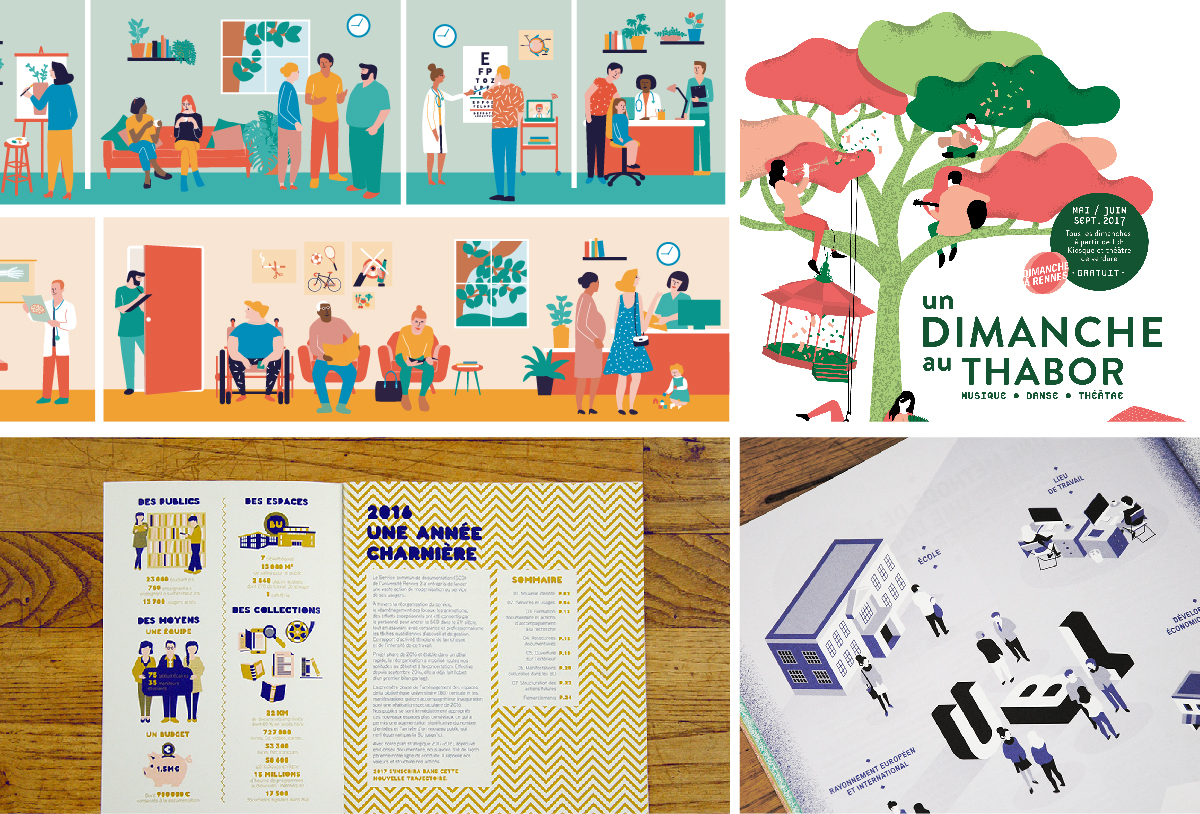 Illustrations réalisées par PollenStudio pour Rennes Métropole, les BU de R2 et l’UBL