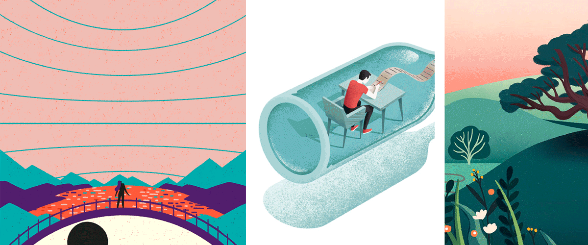 En parlant d’ombres, on parle aussi de dégradés. Ils sont omniprésents dans les illustrations. Comme les ombres, ils donnent de la profondeur aux illustrations.